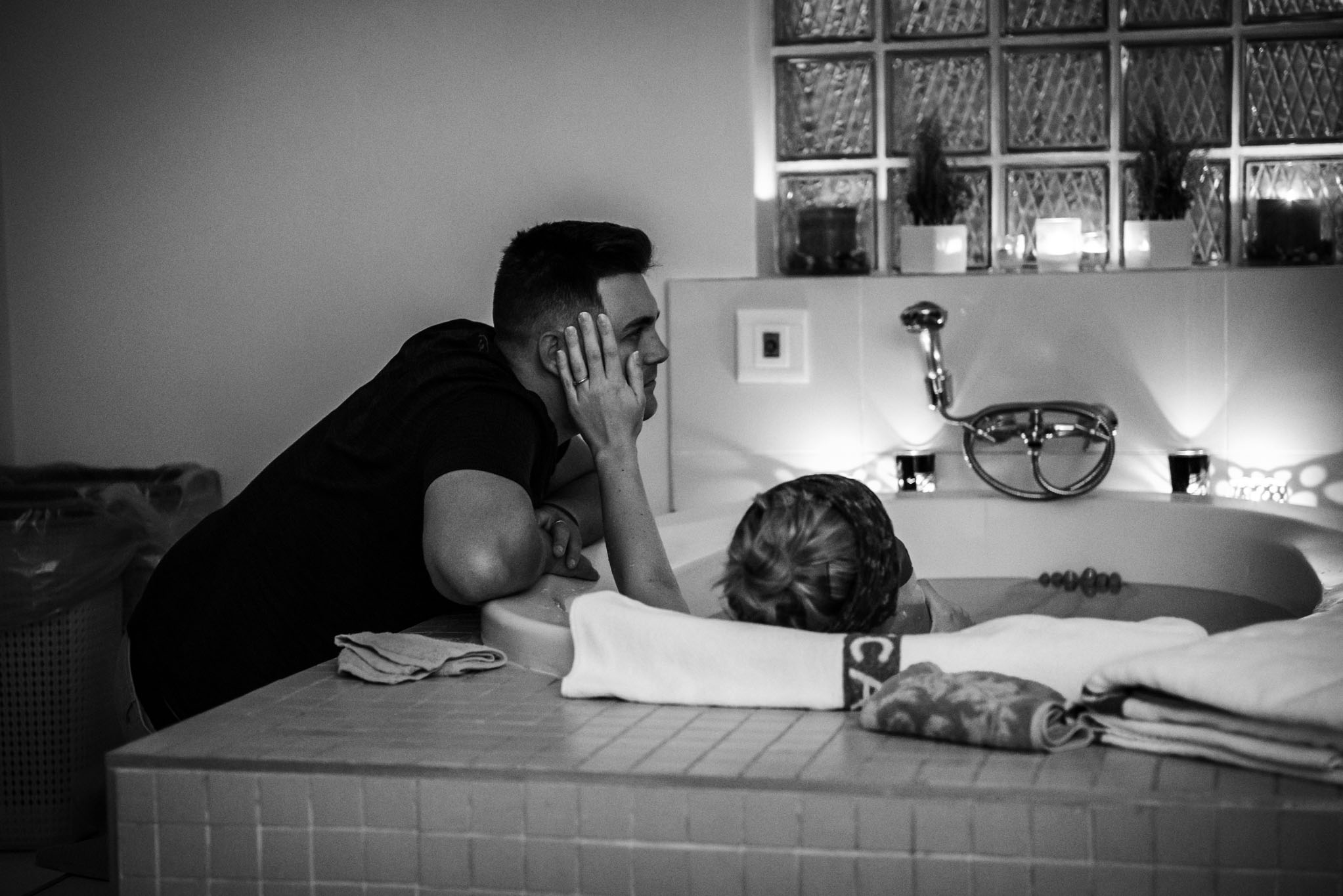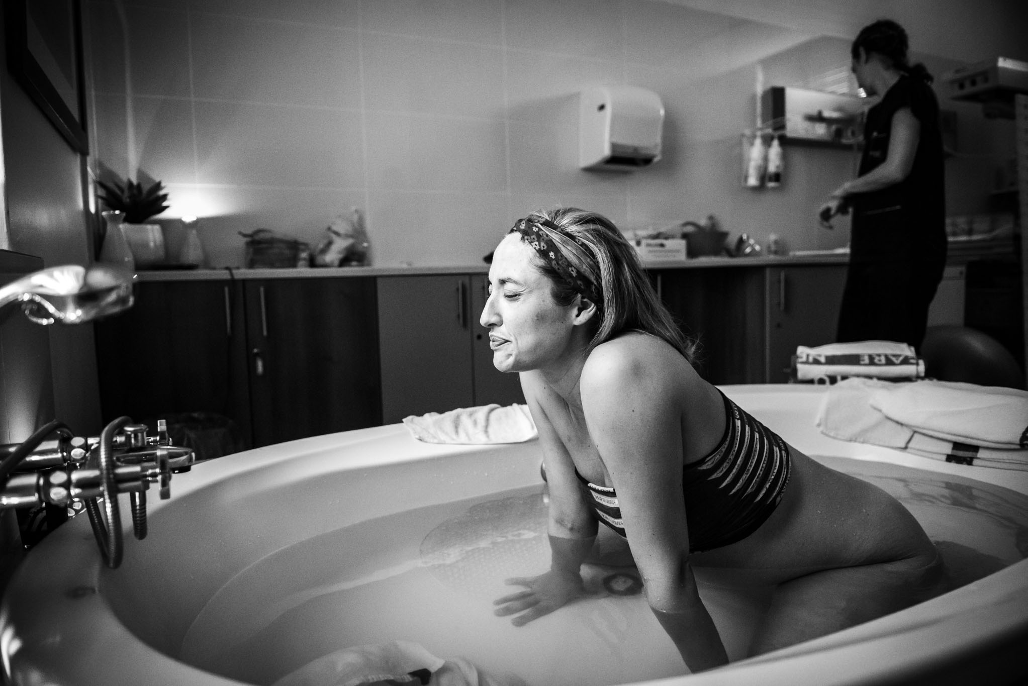 We arrived at the hospital around 1:00 in the morning. My sweet Midwife, Christelle had been there the whole evening preparing everything we would need. When we arrived at the hospital my contractions quieted down and became less intense and further apart. For the next four hours I would be in and out the bath, walking and swaying and hoping Elisa would make her appearance sooner than later. This peaceful period allowed us to have so many laughs, stories and beautiful moments that I will treasure forever. Thankfully Elisa’s heartbeat was as steady as can be throughout the long wait.