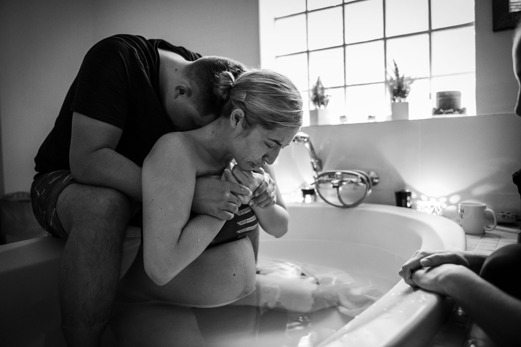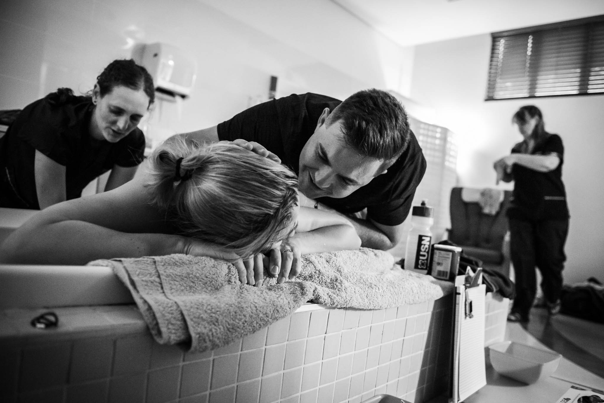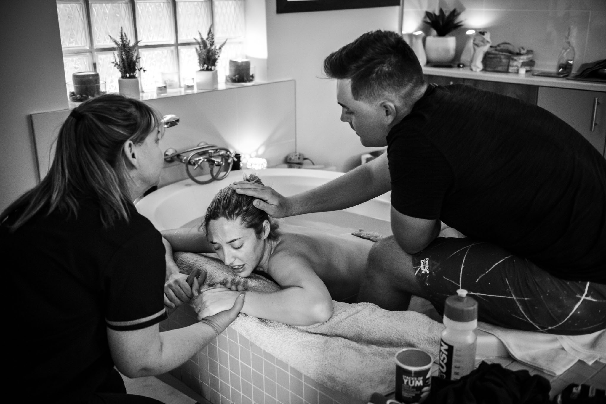 By 5:00am I was exhausted and anxious for things to start getting on. My incredibly supportive and loving husband and I tried to take a nap but my contractions were still about a 6/10, not allowing me to really sleep. Finally, by 6:00am the contractions started getting longer and closer together. I still found much more relief by resting in the bath on all fours during contractions, listening to my worship music and steady encouragement from Christelle and my husband Heinrich. Around 9:00am the contractions were in full swing, 10/10 and I tried some pain relieving “laughing gas”. It did help me regulate my breathing but unfortunately made me nauseous, so back to the bath it was. At some point the assisting midwife, Heather arrived and in the last hour she was in front of me, holding my hands and talking me steadily through every contraction and coaching my breathing.