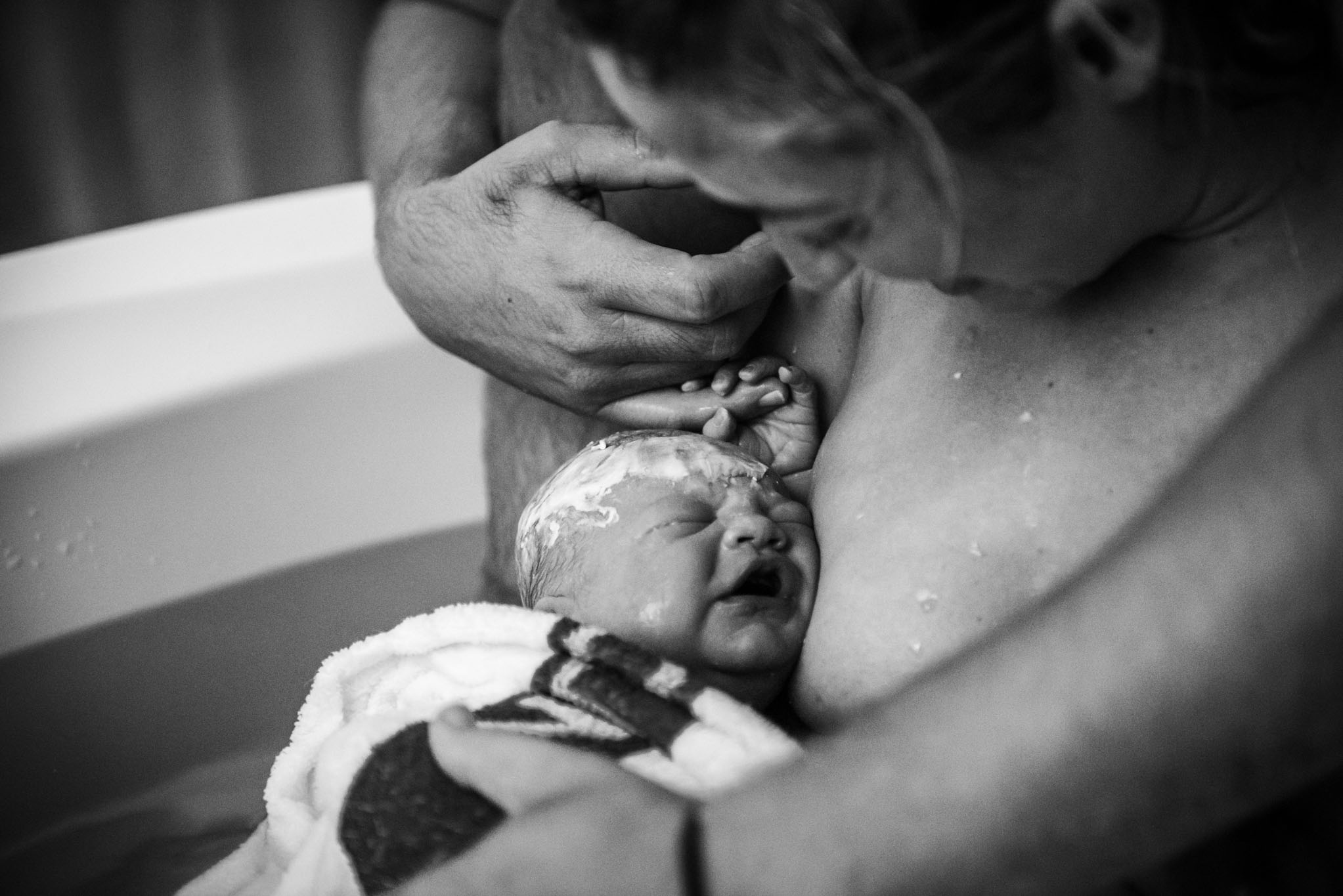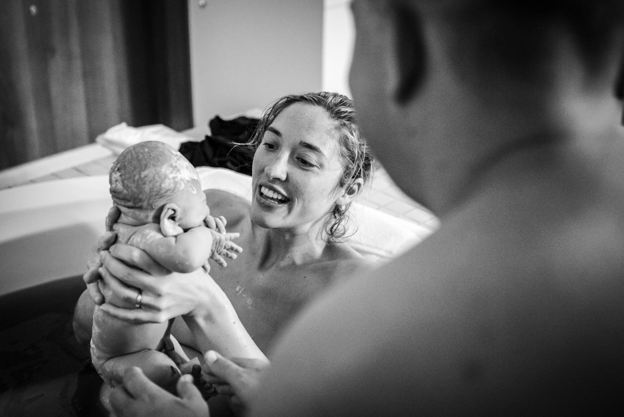 For a couple of precious moments everything faded away, it was just me, Heinrich and Elisa. We had all the time we needed to hold and welcome this precious gift. Later, Heinrich cut the umbilical cord and Christelle helped me out of the bath and on to the bed for the final contraction to expel the placenta. She also started to stitch me up as I had torn a little bit.